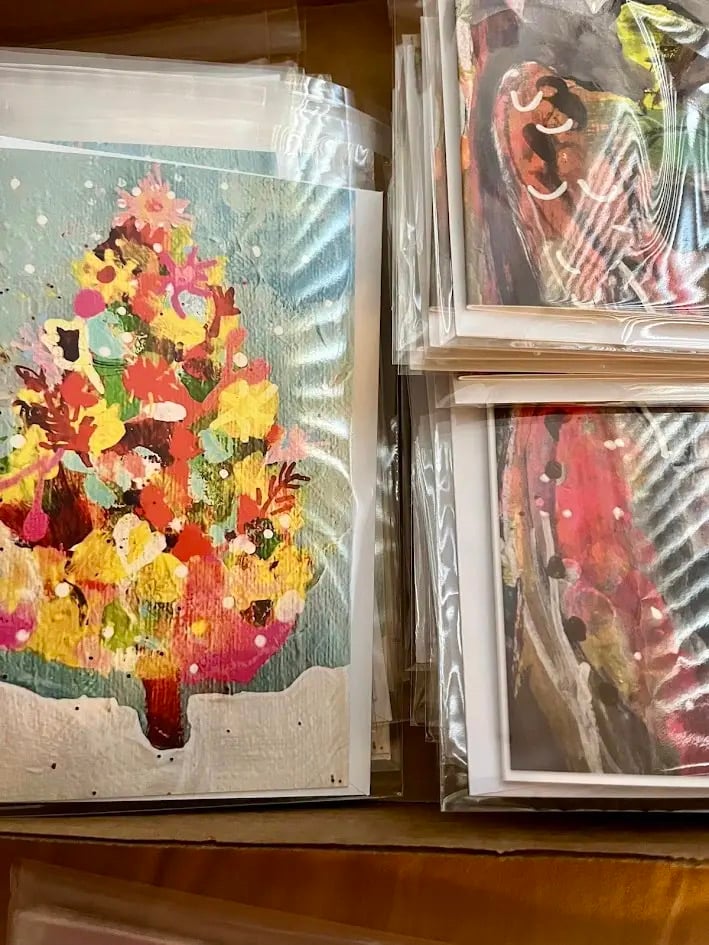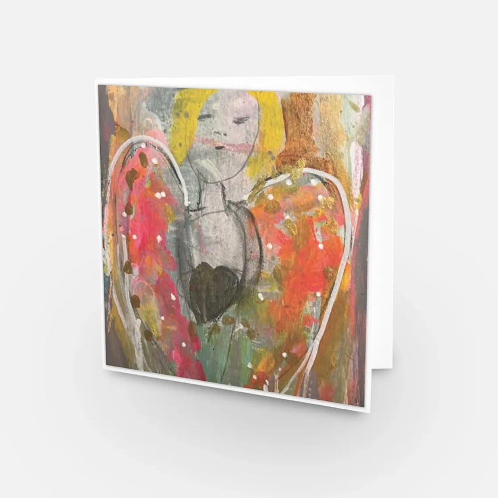 Goldie was painted as part of my “Angel Friends” series a few years ago in acrylic inks and mixed media. She is a good Angel and a protective friend to share any time of year!